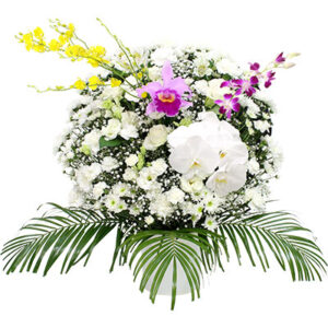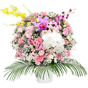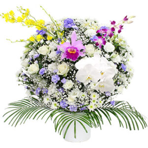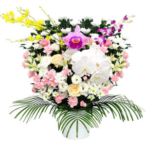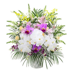 H75cm × W70cm胡蝶蘭・バラ・デンファレ・ オンシジューム・カーネーション・トルコギキョウ・カスミソウ・ドラセナー