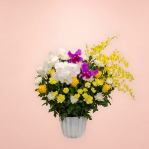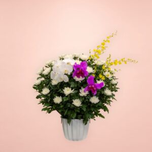 菊の気品さ、洋花の華やかさをあわせもった人気のあるスタイルです。