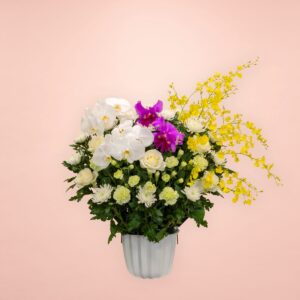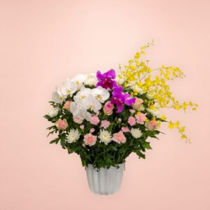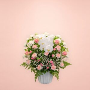 柔らかな色彩の装いは最後に手向けるお別れ花として故人を優しく彩ります。